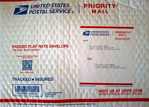 - Locate a Priority Padded Envelope in your box (the mailing label is already affixed to it)